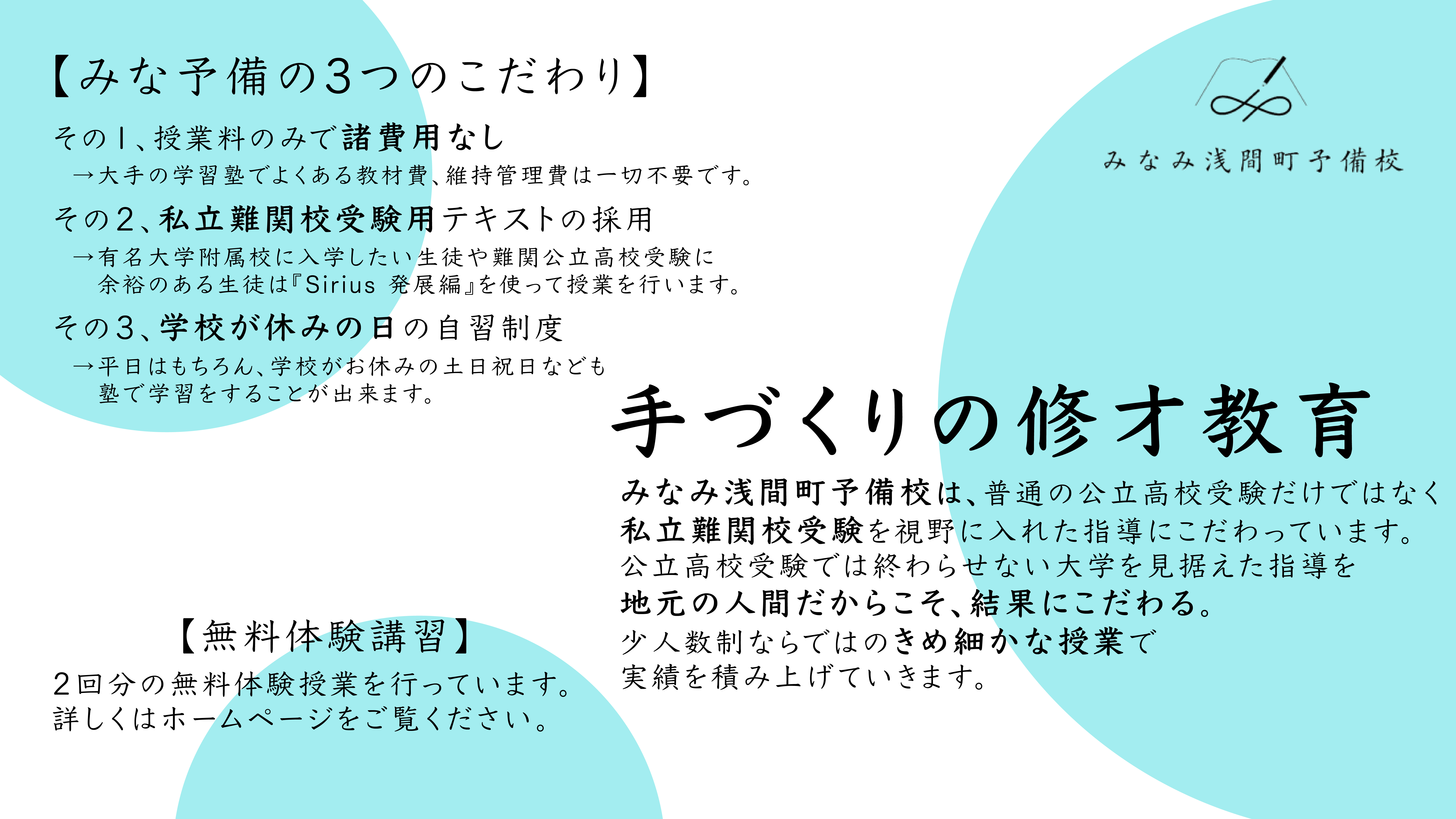 みなみ浅間町予備校では、「生徒が希望する学校に行けるように成果にこだわった指導」を心がけています。