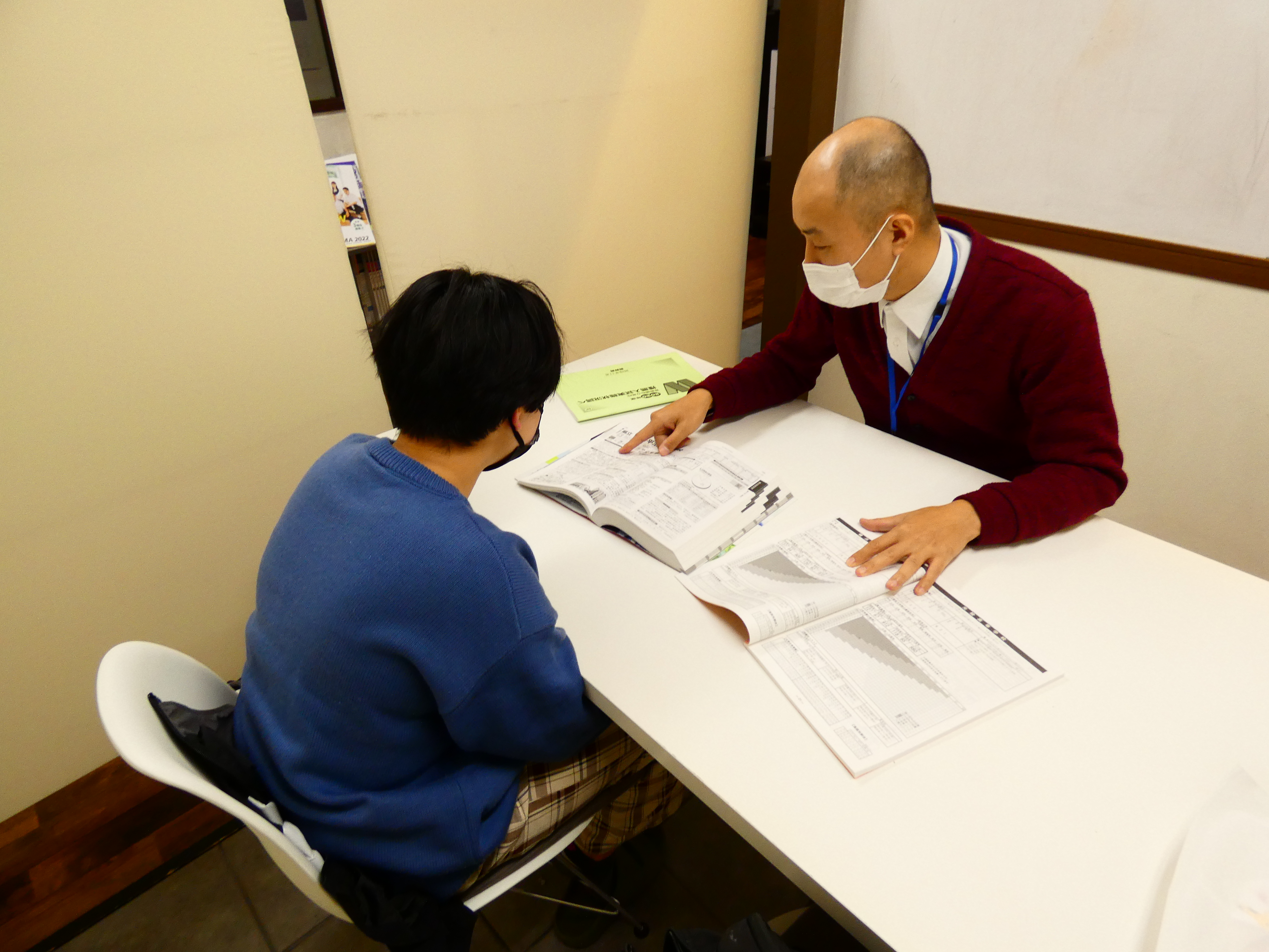 みなみ浅間町予備校では、入会前に生徒さんの学習状況、成績、目標などを細かくヒアリングしたうえで、個別のカリキュラムを作成しています。オリジナルのカリキュラムで勉強を進められるので、確実に成績向上を目指せる仕組みとなっています。